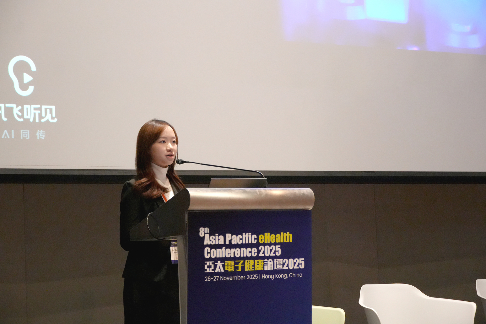 The InnoHK Advanced Biomedical Instrumentation Centre (ABIC) is delighted to share that our Postdoctoral Research Fellow, Dr. Michelle Lo, CEO and Co-founder of AxileLife Limited (ABIC’s spin-off), delivered an invited talk at the 8th Asia Pacific eHealth Conference (APEHC) on 27 November 2025. The Conference is co-organized by the Hong Kong Society of Medical Informatics, eHealth Consortium & HL7 Hong Kong.